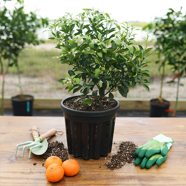 Calamondins prefer slightly acidic, well-draining soil that is rich in organic matter. You can add composted leaves or grass clippings to the soil to enrich the ground, and sand to encourage drainage. If you are growing your Calamondin Tree in a pot, use potting soil amended with additional coarse sand and perlite for better drainage.