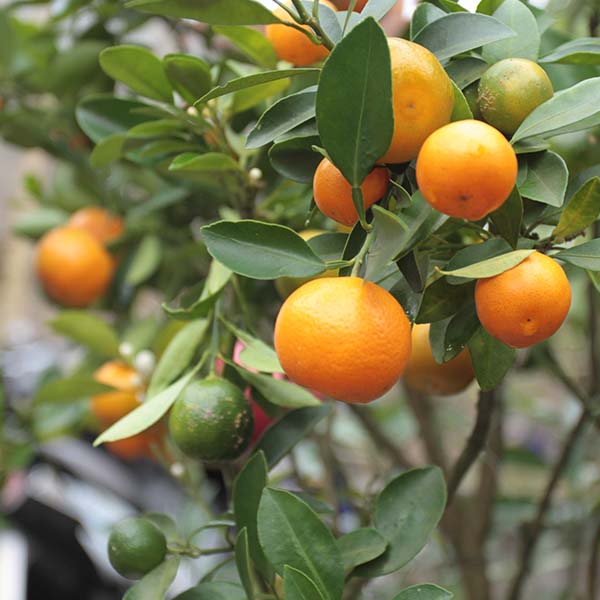 The Calamondin (Calamansi ) tree is a cross between a tangerine and a kumquat, and produces a small, thin-skinned, tart citrus fruit that is great to eat out of hand, or for use as juice, in salads, and for cooking.