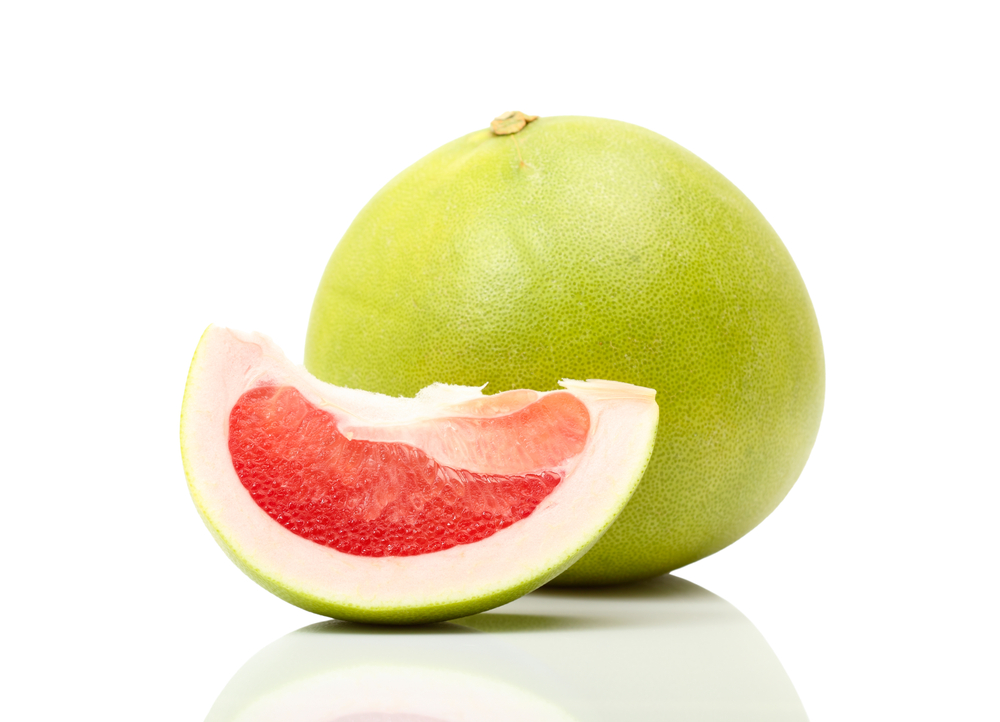 Pummelo fruit, sometimes spelled Pomelo, are known for their enormous size. Known as Citrus Maxima, its the largest citrus fruit there is. The bright pink flesh is as beautiful as it is tasty. It tastes similar to a grapefruit, but a little less bitter.