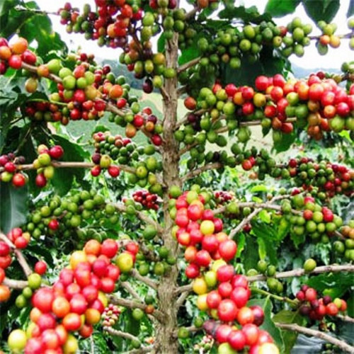 A mature Coffee Tree thriving in its native habitat grows enough Coffee Cherries to produce about one pound of dried and roasted coffee per year.