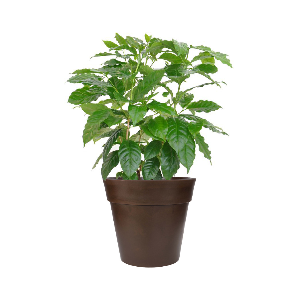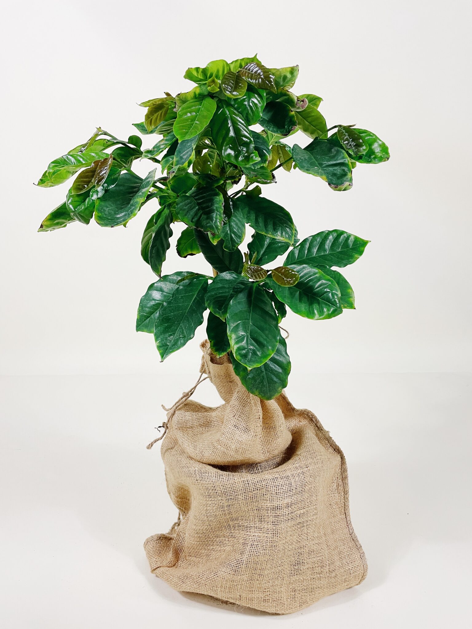 Coffee Trees are evergreen, so they do not shed their leaves. Because of this, they make great house or patio plants. The caffeine that the Coffee Tree produces acts as a natural defense against many pests. You can prune your potted Coffee Tree to maintain it in a pleasing shape, but the trees remain small and are well suited to container gardening. Trim away lower leaves that turn yellow, and always remove dead or dying limbs.