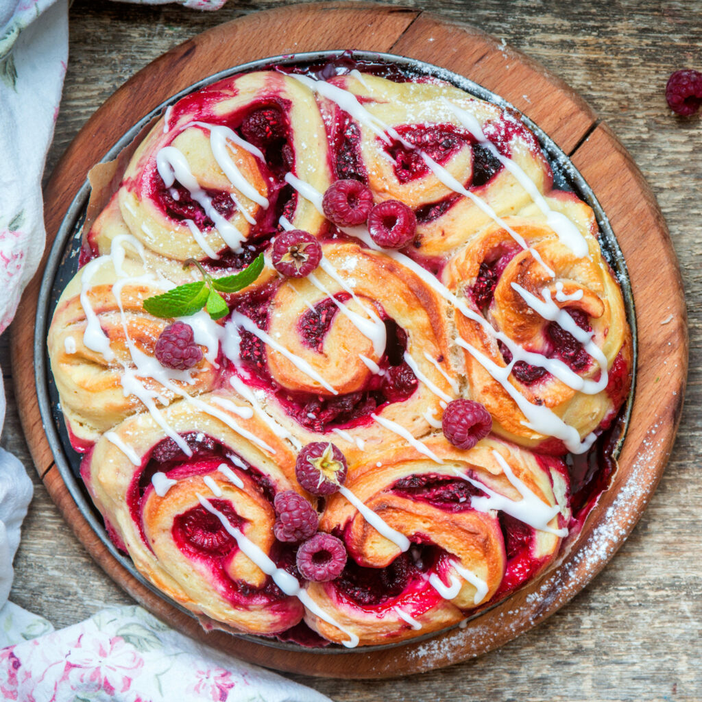 Soft, fluffy, melt-in-your-mouth Raspberry Sweet Rolls are a fun, fruity twist on classic cinnamon rolls. They’re swirled with fresh raspberries and topped with luscious cream cheese frosting that’s accented with bright, citrusy lemon notes.