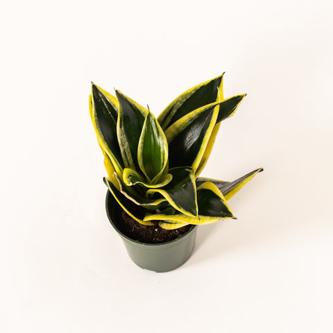 Sansevierias grow best in bright indirect light and look great as statement pieces on tables, shelves or any other such surfaces. They require well-drained soil and need to be watered only once every few weeks.