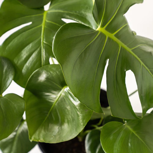– Also known as a split leaf philodendron or Swiss Cheese Plant, due to the large holes in its leaves, the Monstera Deliciosa is a large indoor plant that can add a bold touch to your interiors. Although it can survive in low light, you should keep it near a window where it will receive indirect sunlight throughout the day.