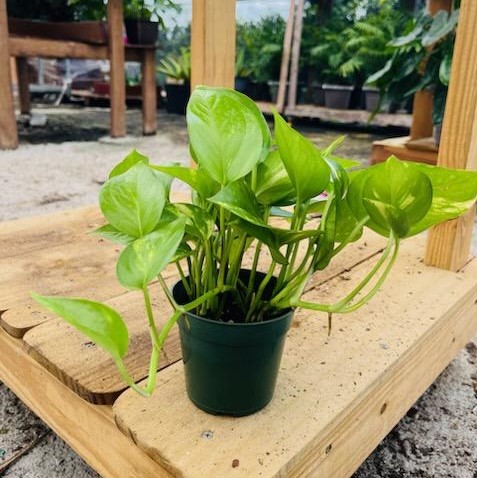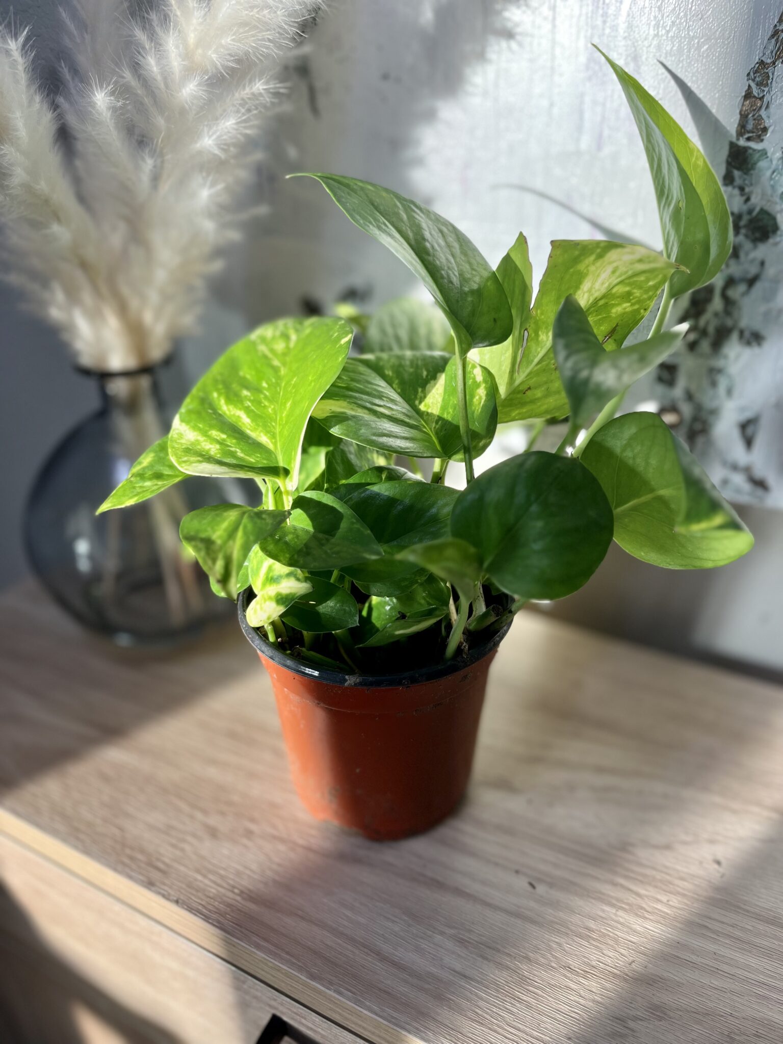 Native to Malaysian jungles, the Golden Pothos stands out with its glossy, heart-shaped yellow and green leaves. It can be placed in a variety of locations on top of surfaces, in a pot, in a hanging basket or attached to a pole. It is a great plant for beginners as it is low-maintenance and easy to take care of.